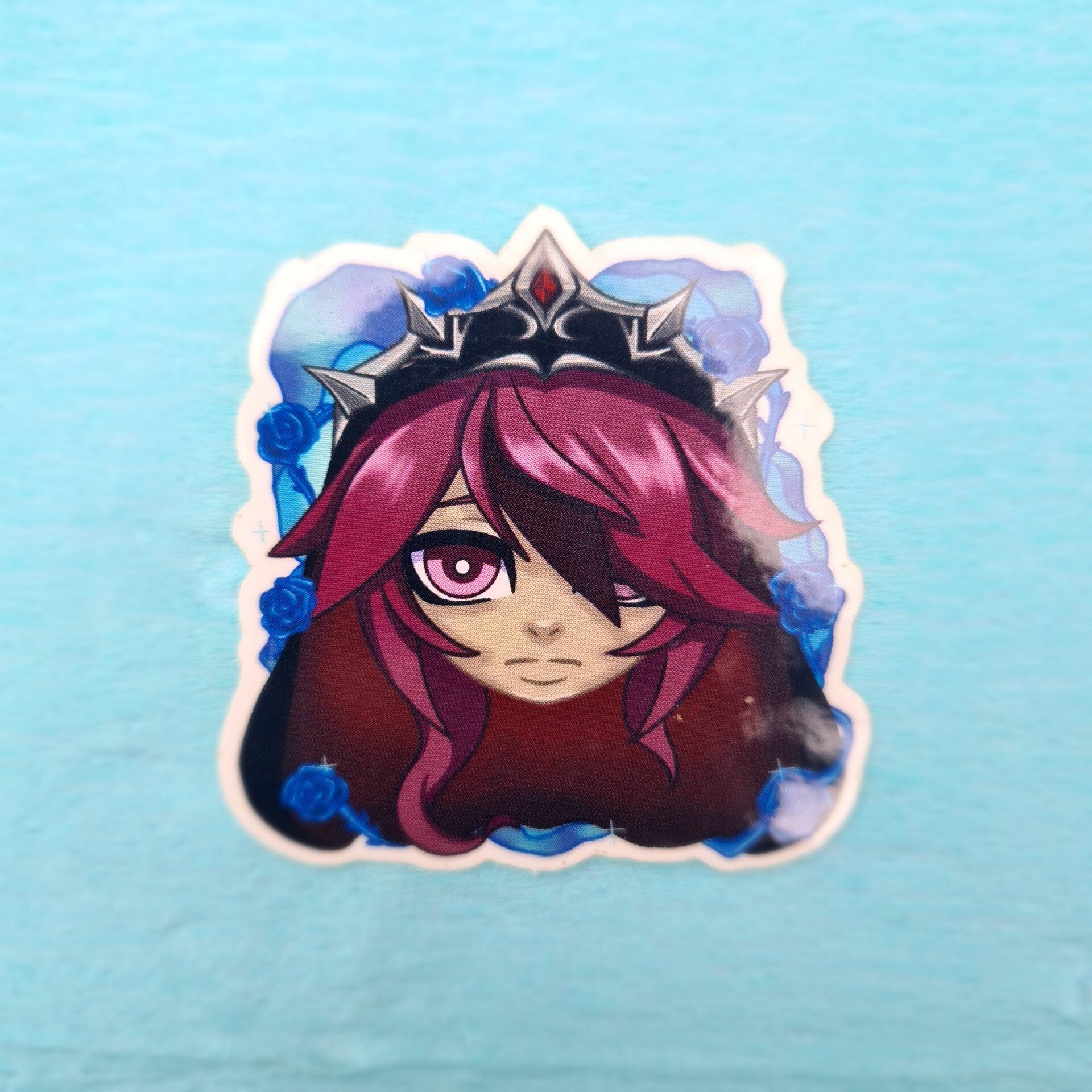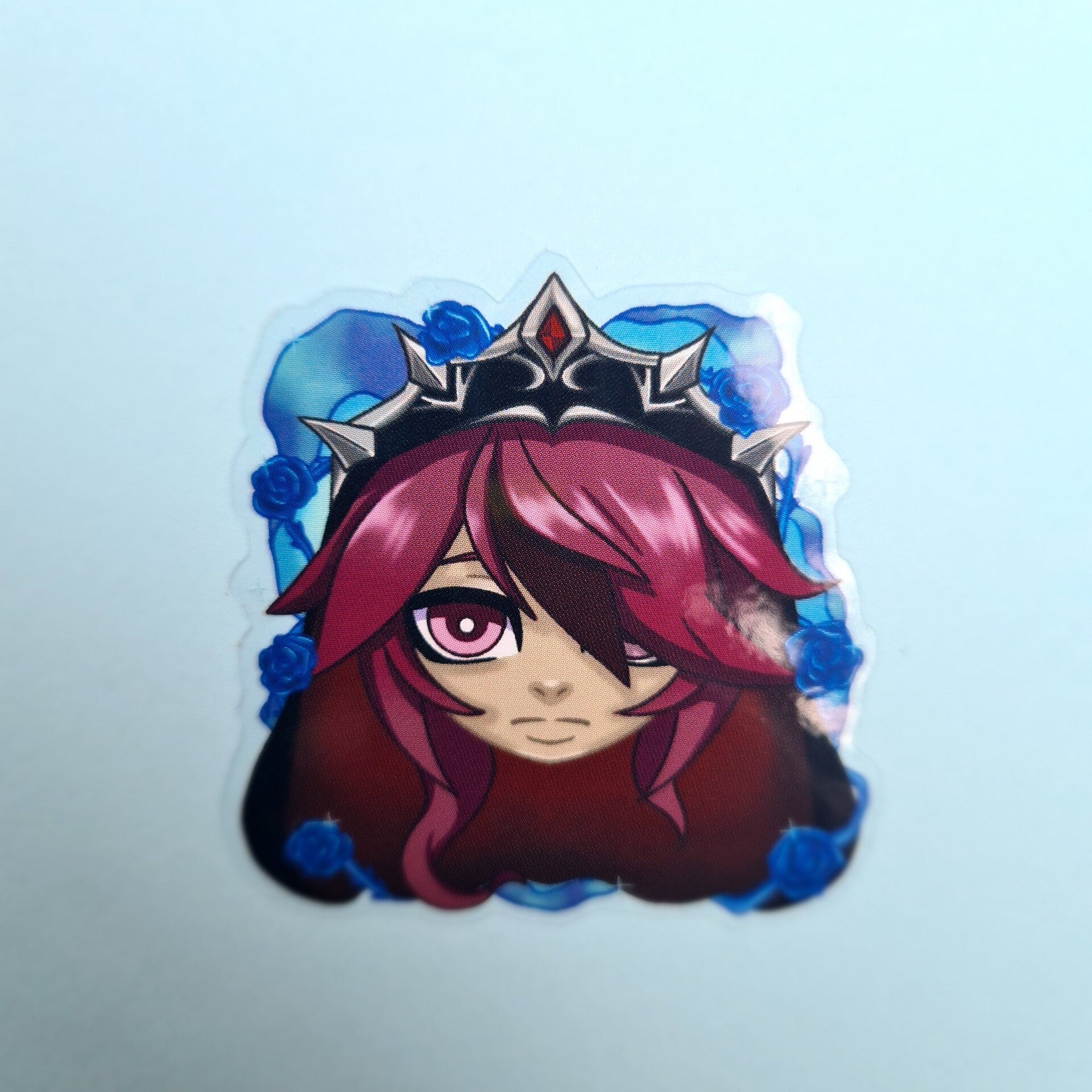 A 4.9 by 5cm vinyl sticker, with a transparent background.
