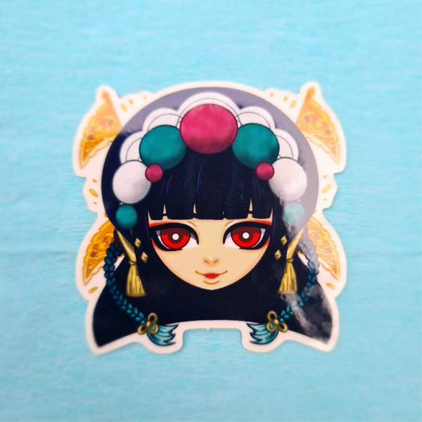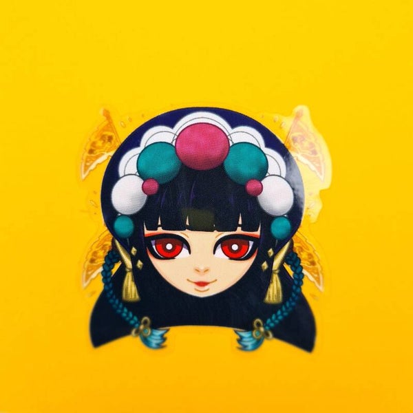 A 5 by 5 cm vinyl sticker, with a transparent background.