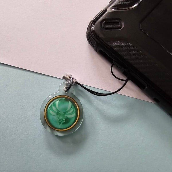 A 2,5 cm round charm with a clear border to decorate your gameconsole, phonecase, keys or give it to a friend.