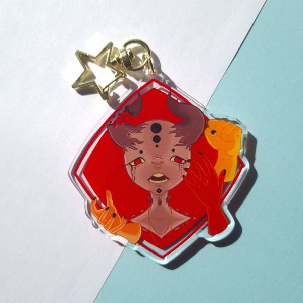 A 7 cm clear acrylic keychain with a golden star clip.