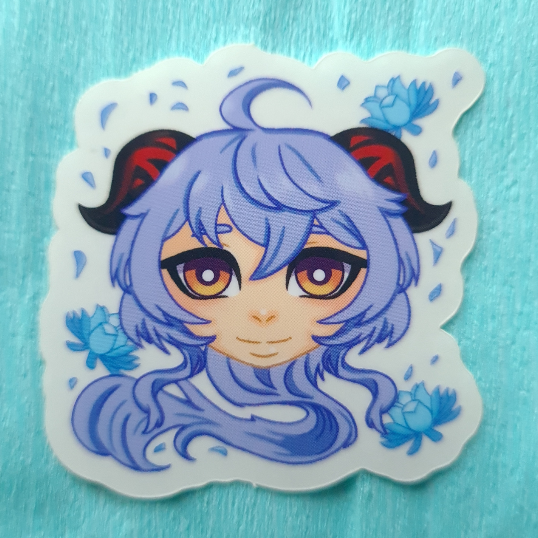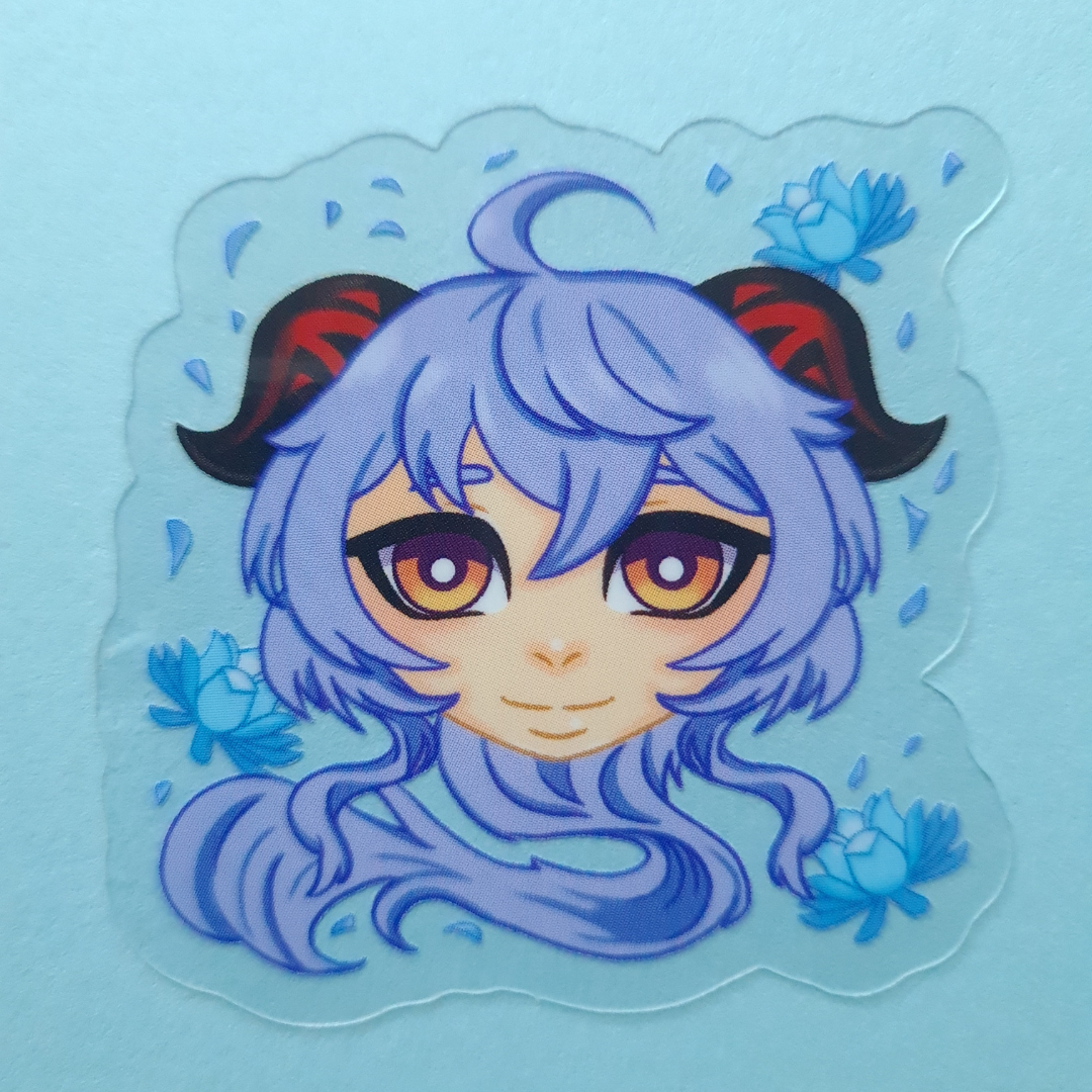 A 5 by 5 cm vinyl sticker, with a transparent background.
